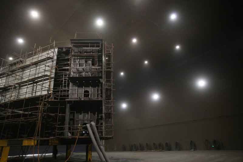 加工工件的噴漆車間擬采用噴漆車庫(kù)結構進行(háng)噴砂和噴漆作業。噴(pēn)丸室中間(jiān)機房布(bù)置(固化作業):噴砂設備、皮帶輸(shū)送(sòng)機、螺旋(xuán)輸送機、鬥式提升機、簾式分離器、存丸箱、組合支架(jià)、維修平台、除(chú)塵器、風機等。噴漆室中間機房布置:漆霧過濾(lǜ)器、有機廢氣(qì)淨化裝(zhuāng)置、電氣中央(yāng)控製室。
